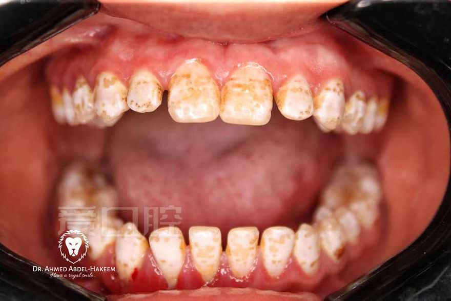 看个树脂修复的氟牙症 —— 上4-4
